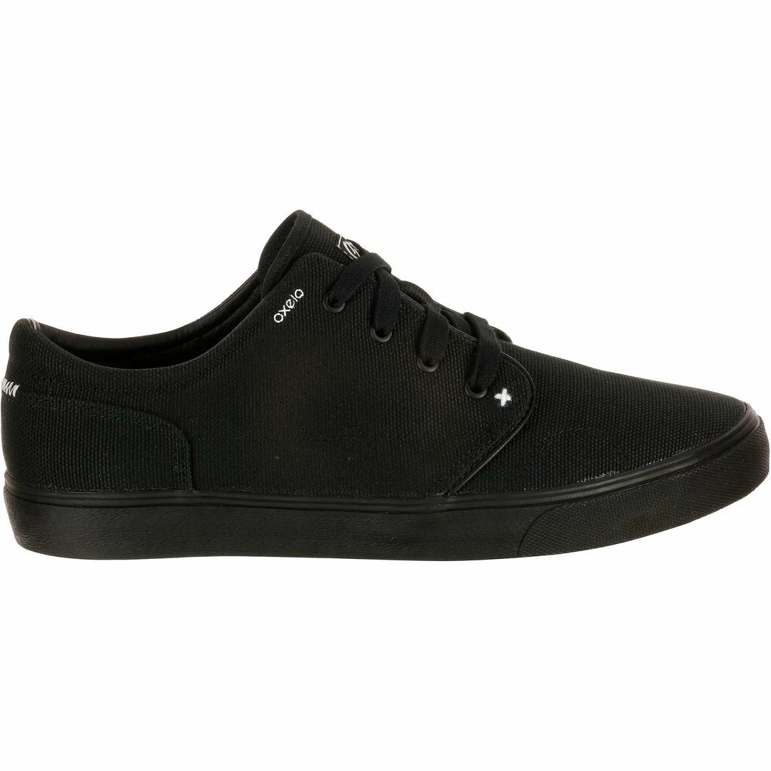 Skate shoes with a canvas upper and vulcanized sole, perfect for skateboarding, longboarding, or scootering.