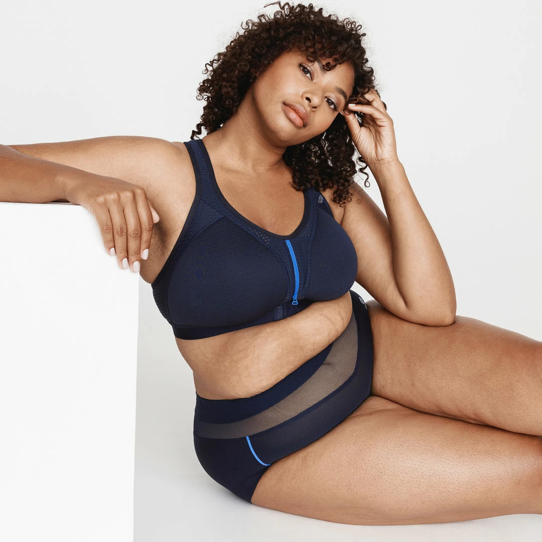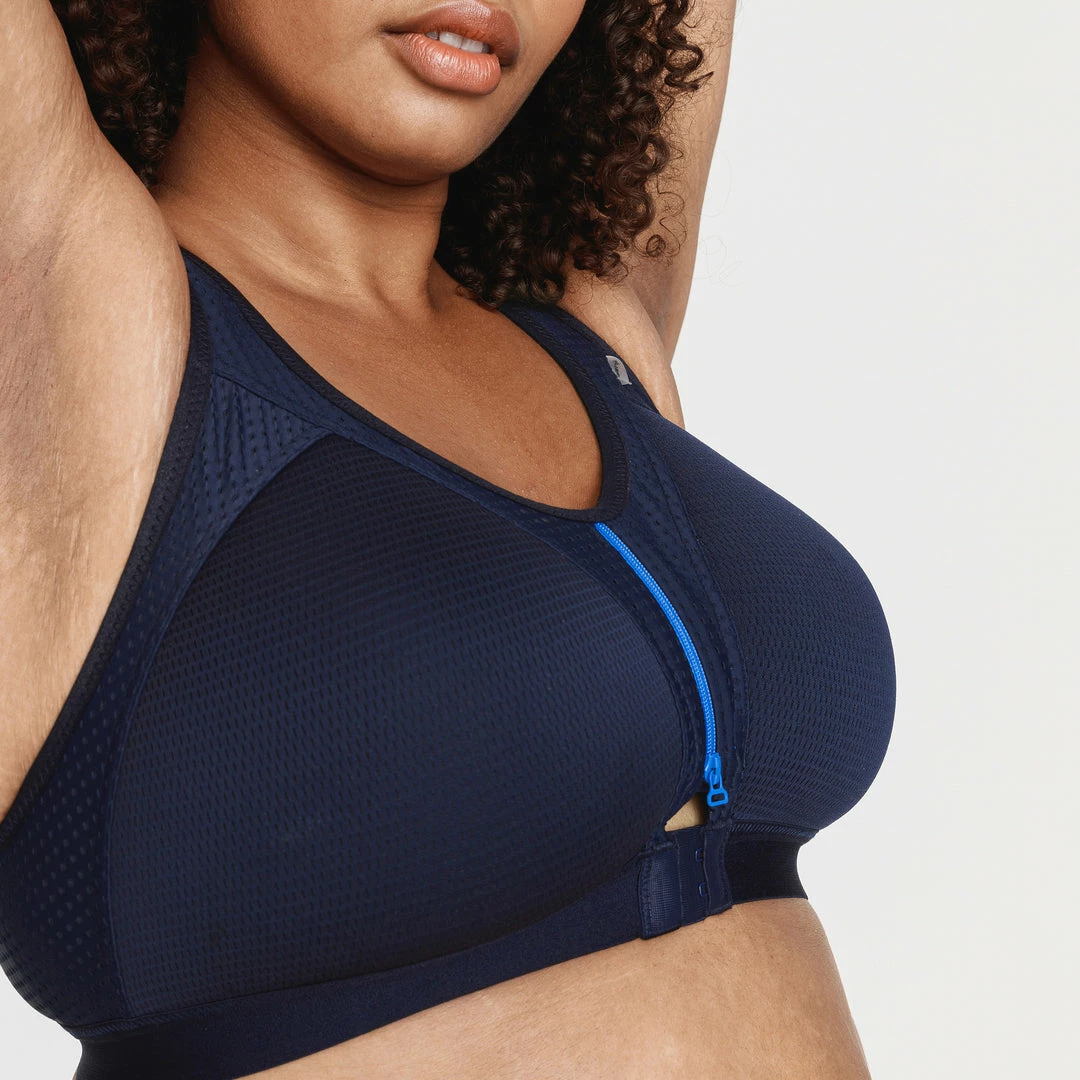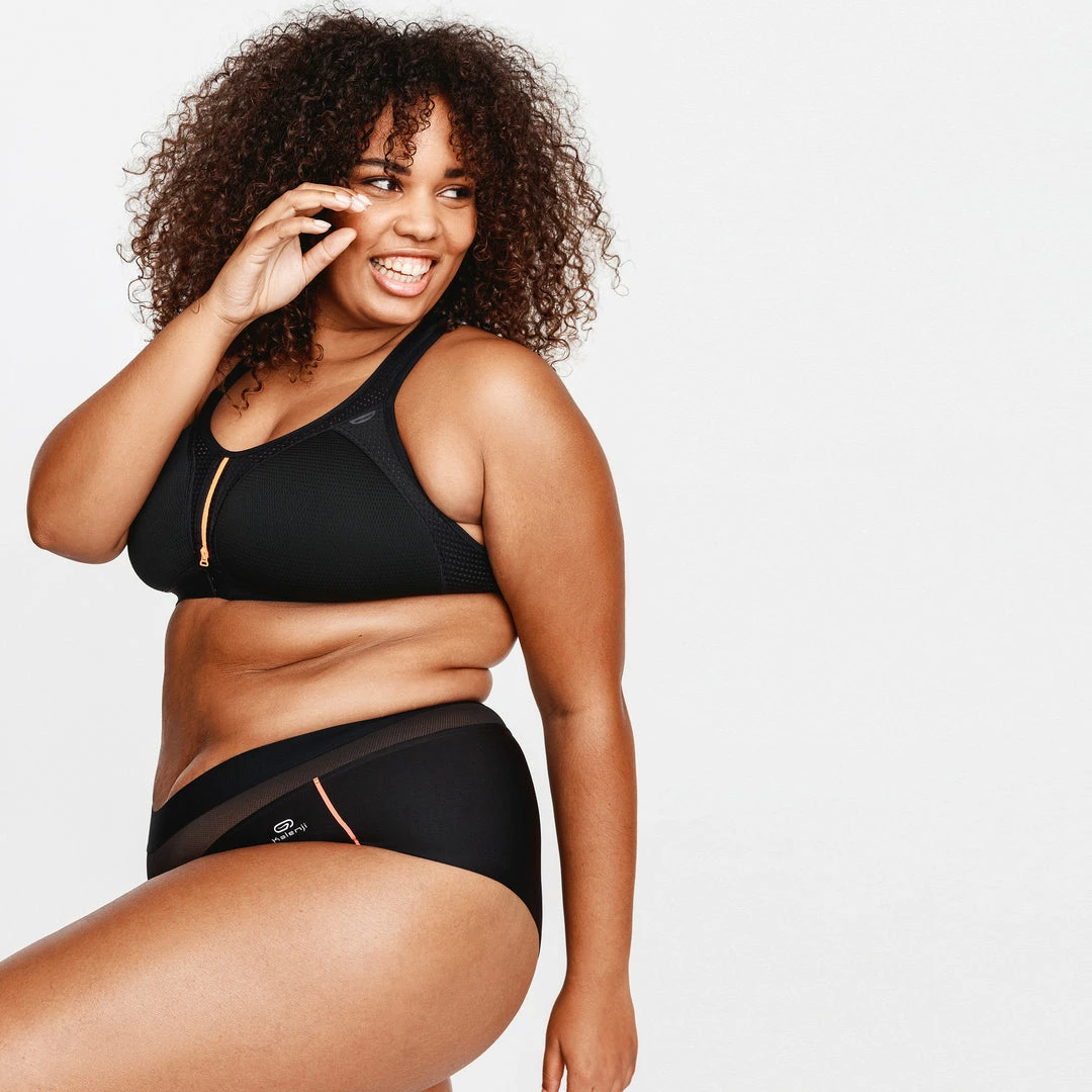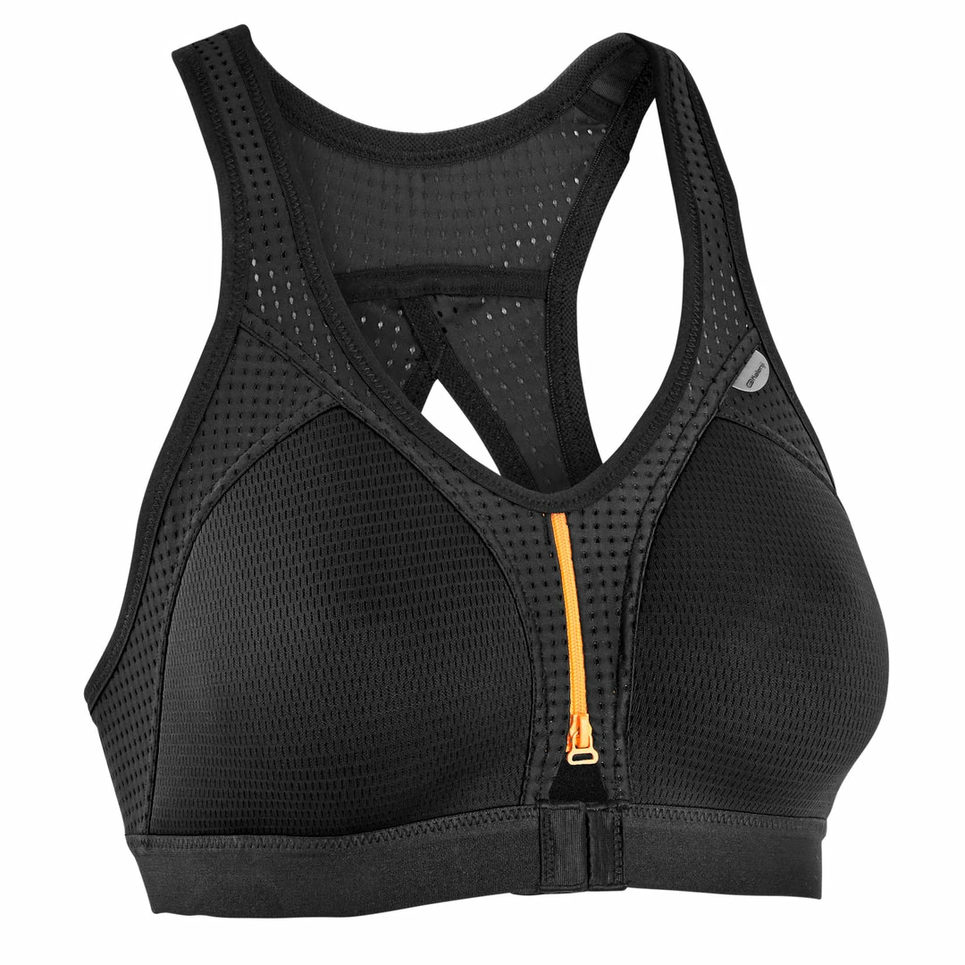 The easy zip running bra has 2 flexible molded cups. They were designed in a special ventilated fabric (3D mesh) that ensures maximum breathability.