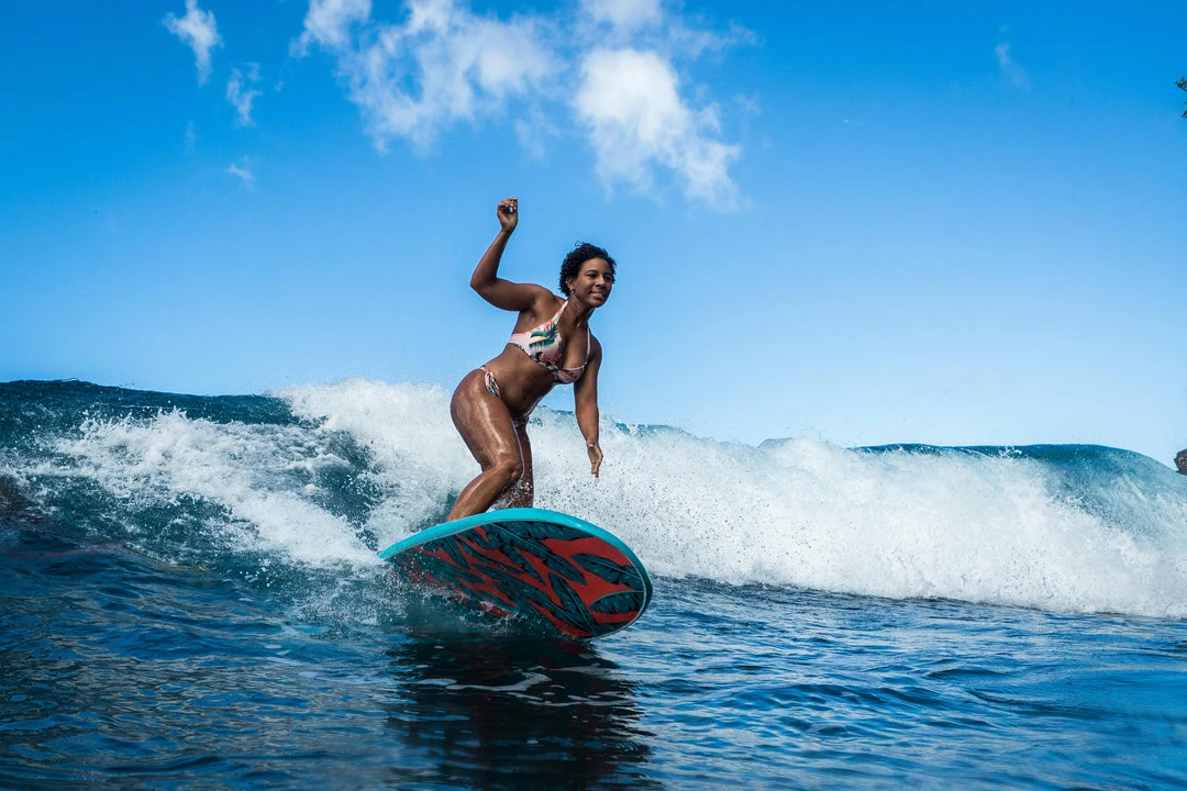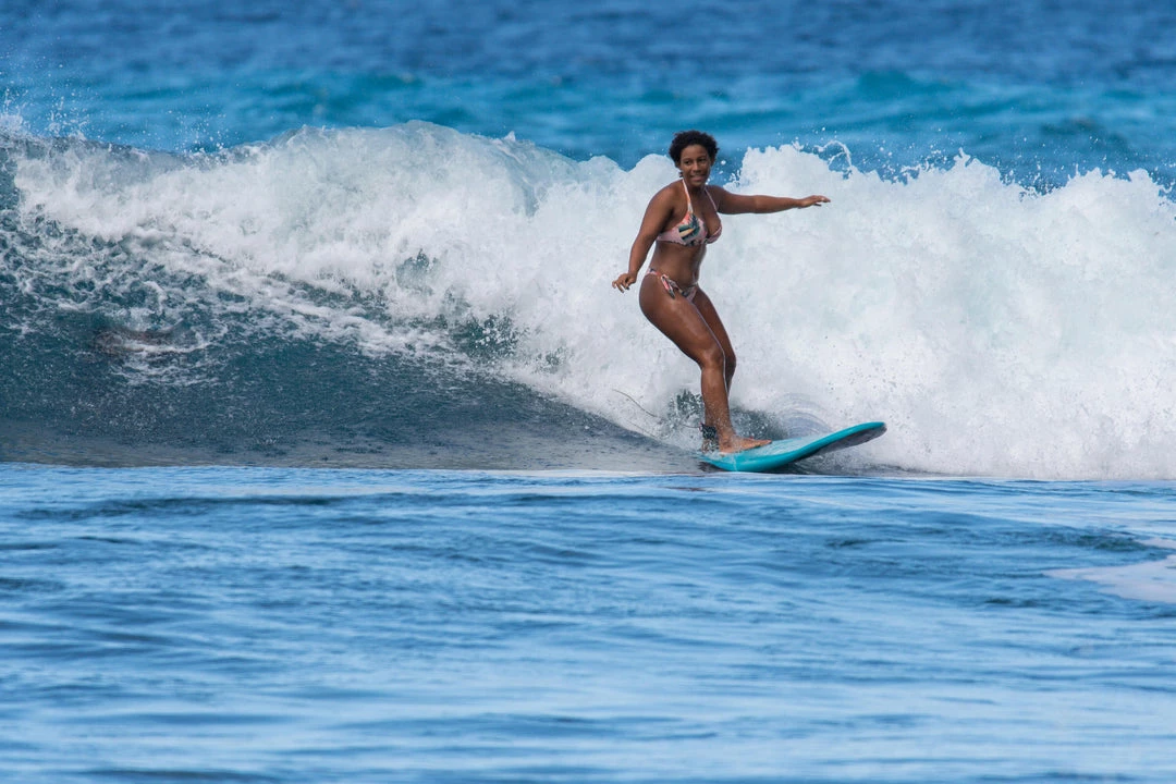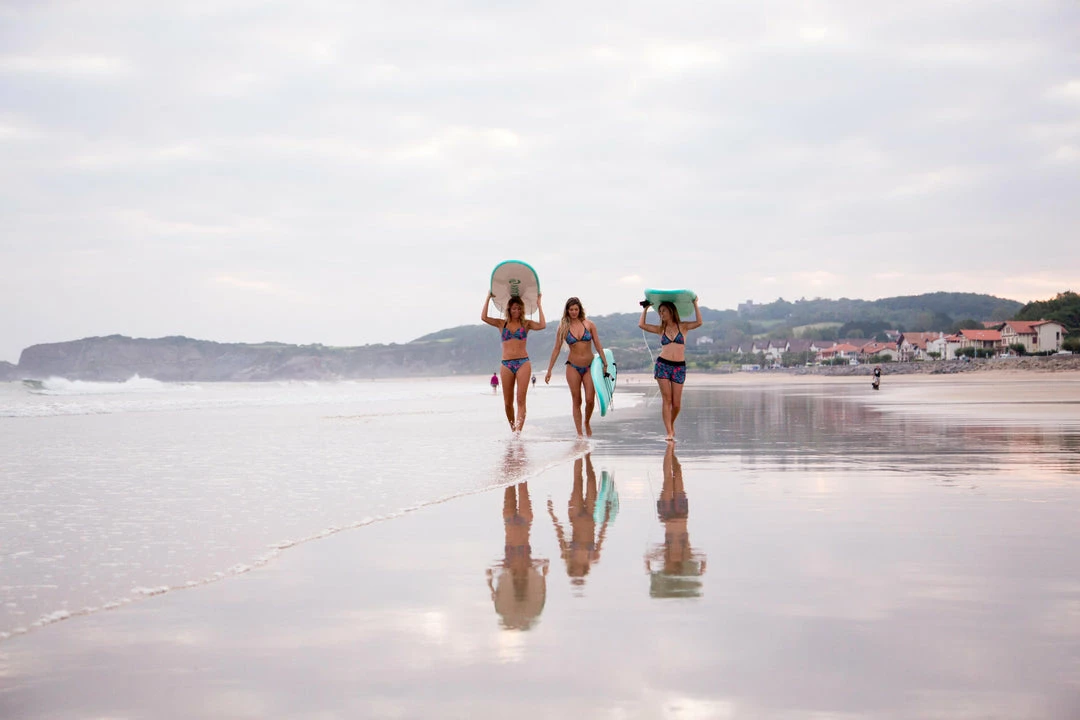 As female surfers of all levels, we have designed this swimsuit for beginner surfers surfing in broken waves.