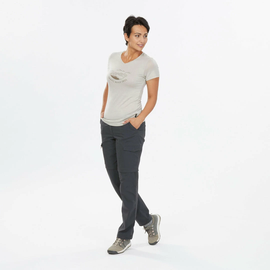 Take this essential V-shaped T-shirt wherever you go on your travels. Its majority Merino wool composition means you can wear it for several days in a row without bad odors.